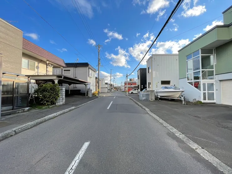 ●交/中央バス「稲山通」停徒歩2分●ぺ/60%●容/200%●地/宅地●用/準工業地域●道/東側9.1m●備/学区:発寒東小(徒歩4分)・西陵中(徒歩5分)